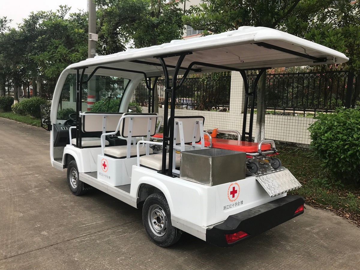 绿松LS- Y1电动医疗救援车 技术参数车型型号LS-Y1 额定乘员(人)5系统电压(V)48/72外形尺寸(长×宽×高)(mm)4100*1500*2070载重(kg)990最大爬坡度≥20%续驶里程(km)≥90最高时速(km/h)≥30车辆概况电动医疗救援车,电动观光车,改装车,订制型,改装轮椅观光车 可按要求订制改装。