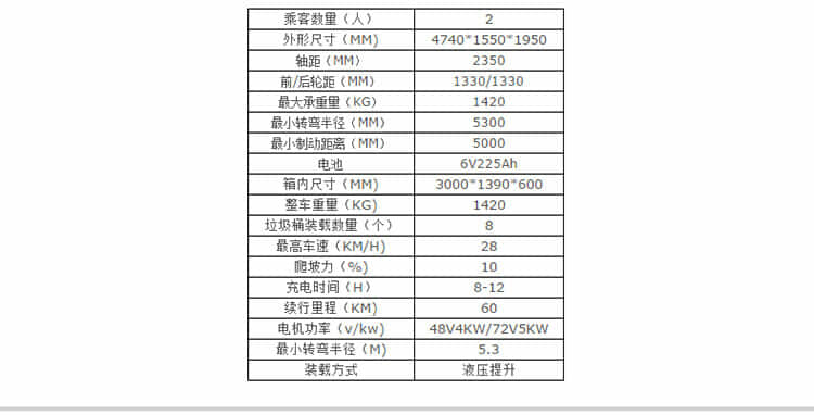 整车重量(KG) 1420 最大爬坡度 ≥30%