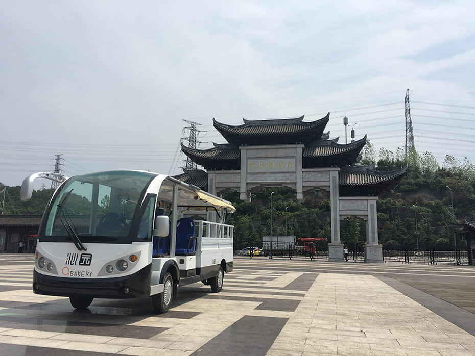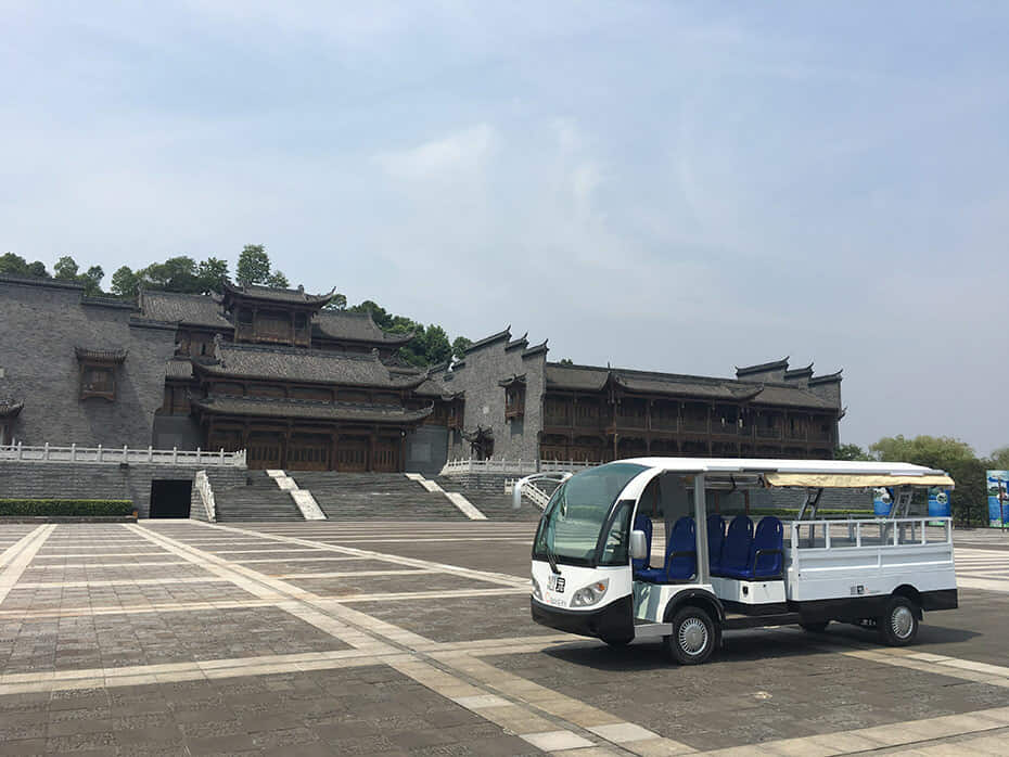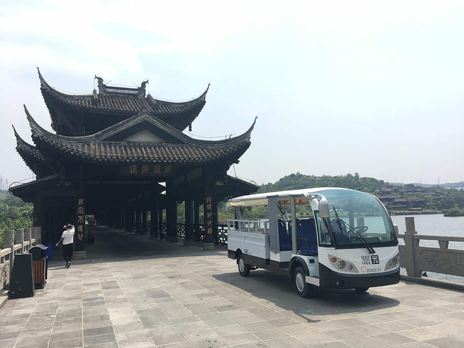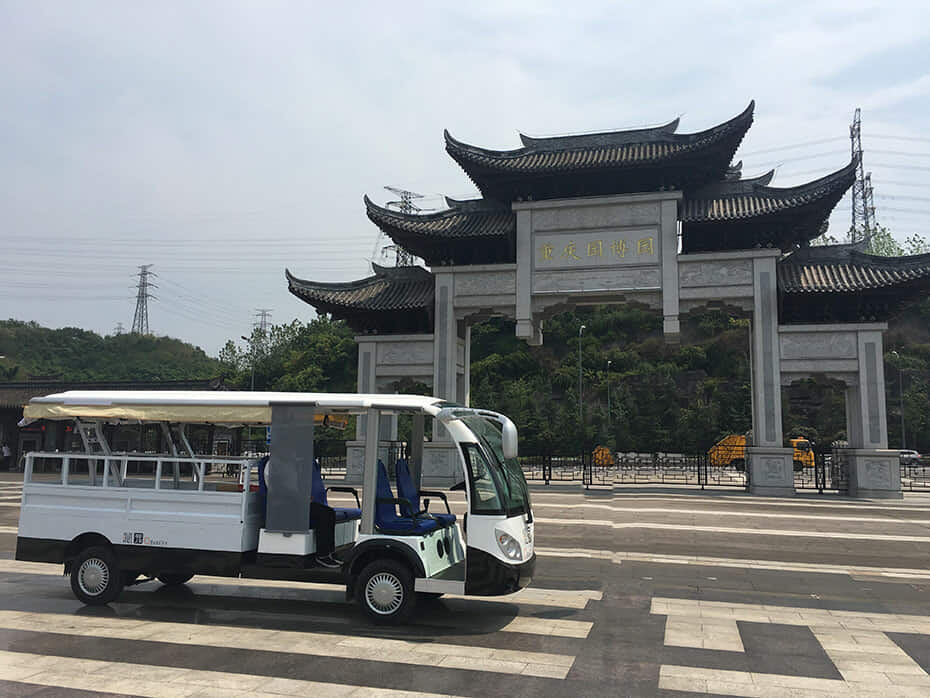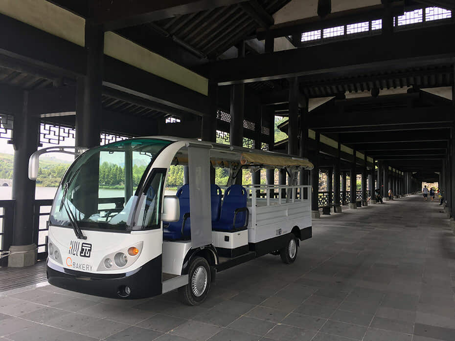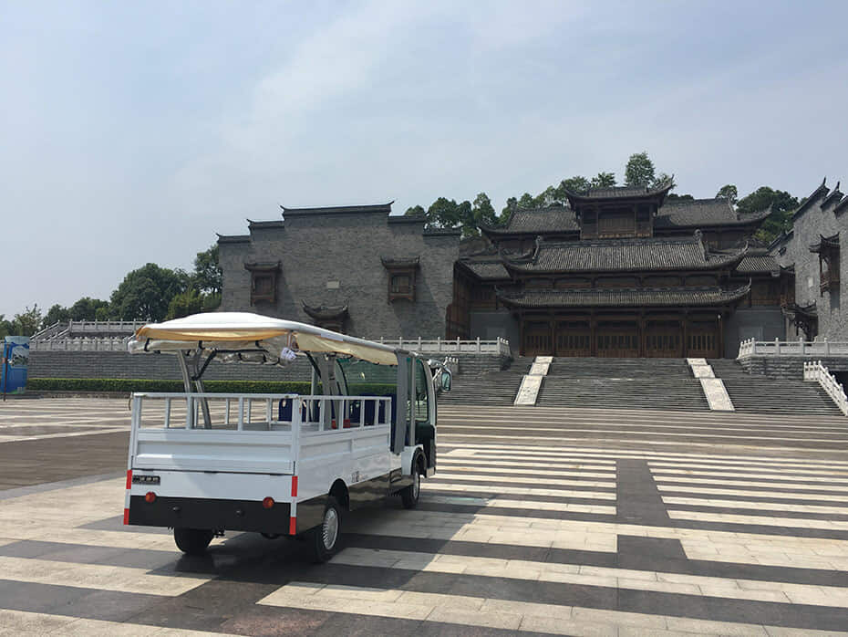 太古集团沁园-园博园门店使用绿松4座电动货箱款观光车