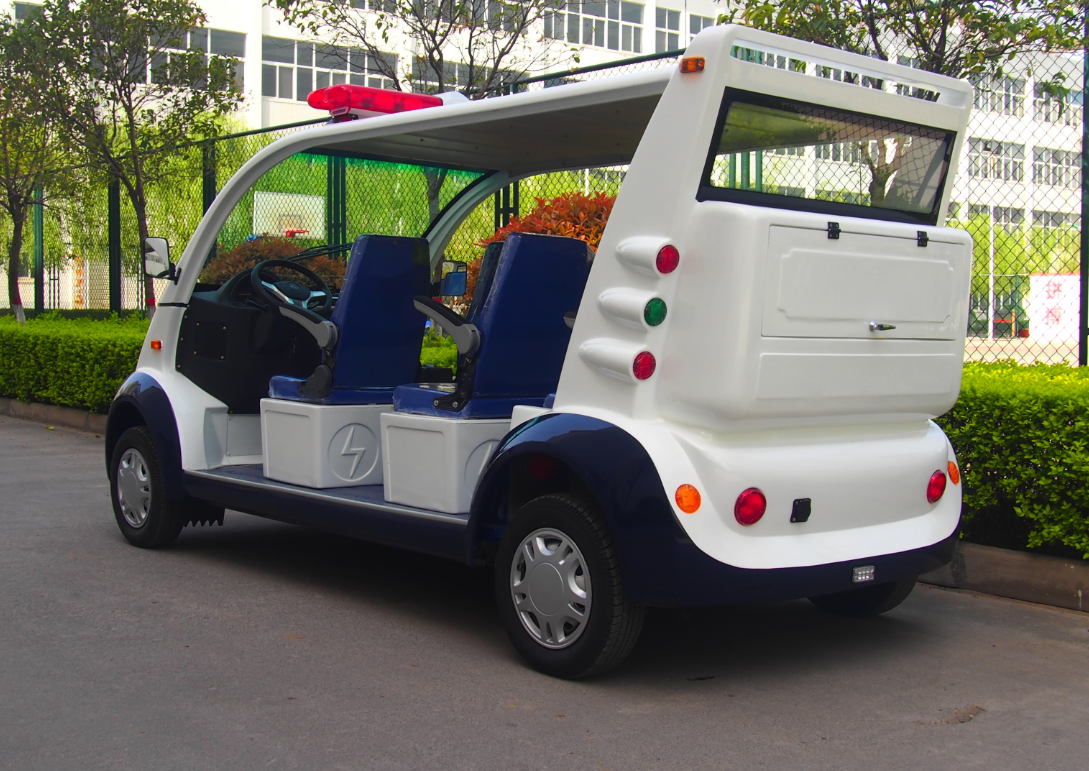 绿松-LS-P8(8人)座敞开式电动巡逻车 电瓶巡逻车 型号:LS-P8.PAC电机:交流48V、5KW电池:8个6V充电机:智能化车载充电机电控:合资交流控制器后桥:整体式后桥车身尺寸:3950*1650*2000mm额定乘员:8人向前速度:25-30 km/h额定爬坡:20%最大续驶里程:80-110 km
