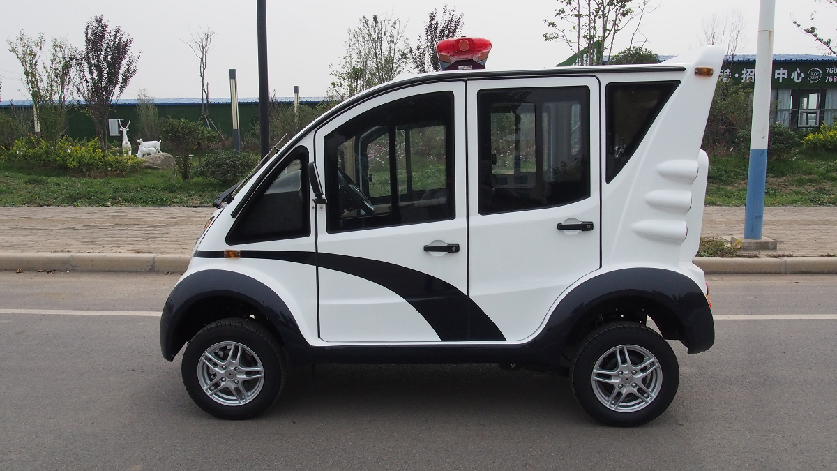 绿松-LS-P5F(4-5)人座封闭式电动巡逻车 可加装空调 型号:LS-P5.PAC电机:交流48V、5KW电池:8个6V充电机:智能化车载充电机电控:合资交流控制器后桥:整体式后桥车身尺寸:3150(长)*1650(宽)*2050(高)mm额定乘员:4-5人向前速度:25-30 km/h额定爬坡:20%最大续驶里程:80-110 km