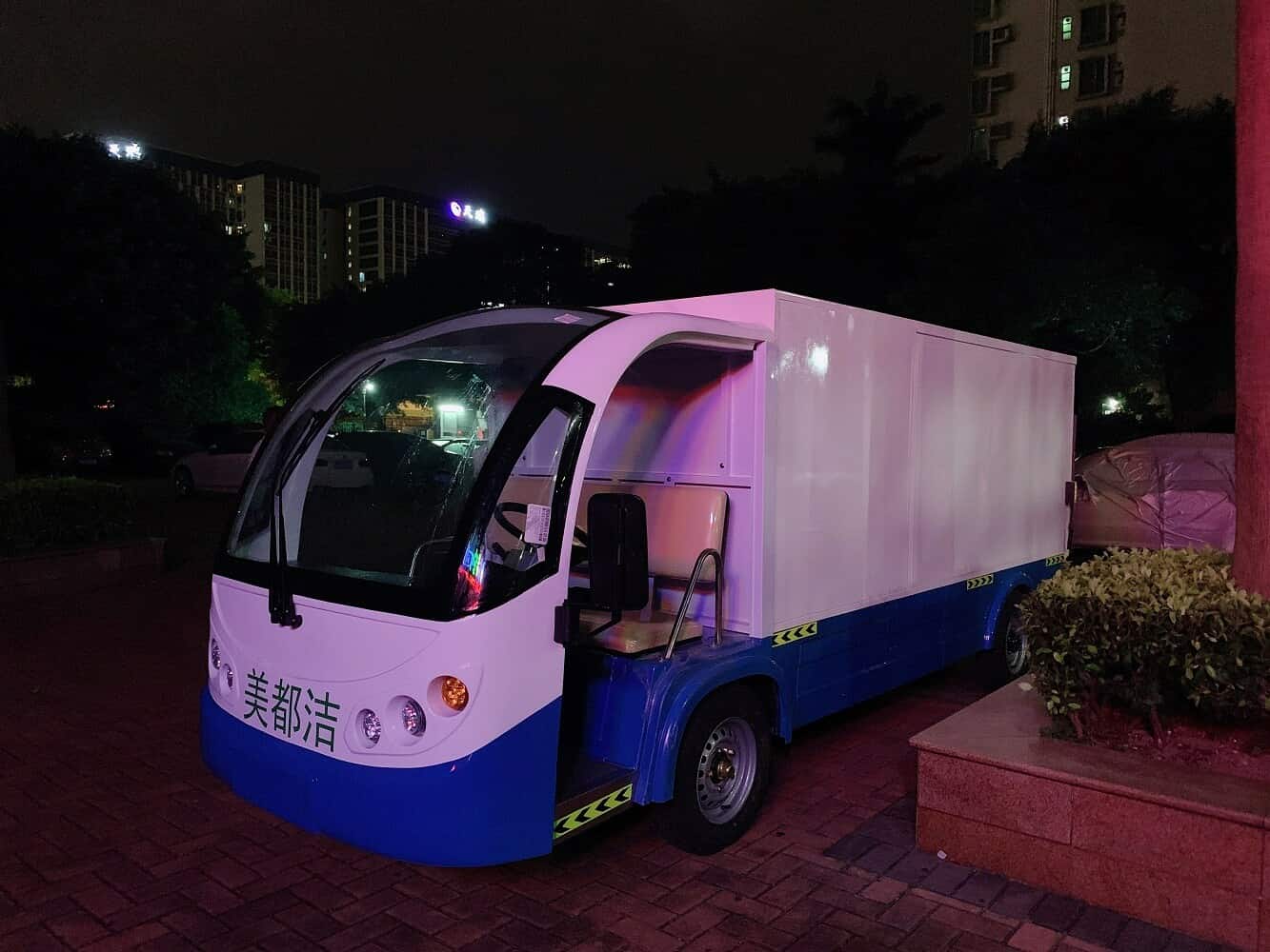 10桶驳运车(GRC2019-10)系列采用抽拉式整体更换电池组,进口原材料制作玻璃钢车身,车身美观大方。适用于短途驳运垃圾桶,可装载240L标准垃圾桶10个,车箱底盘采用整块绿化物板,防止污水渗漏。车箱整体玻璃钢制作,密封性好,耐腐蚀;