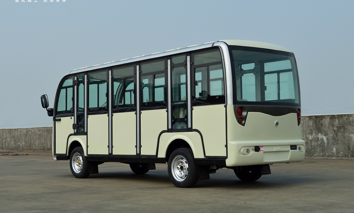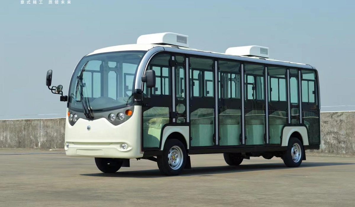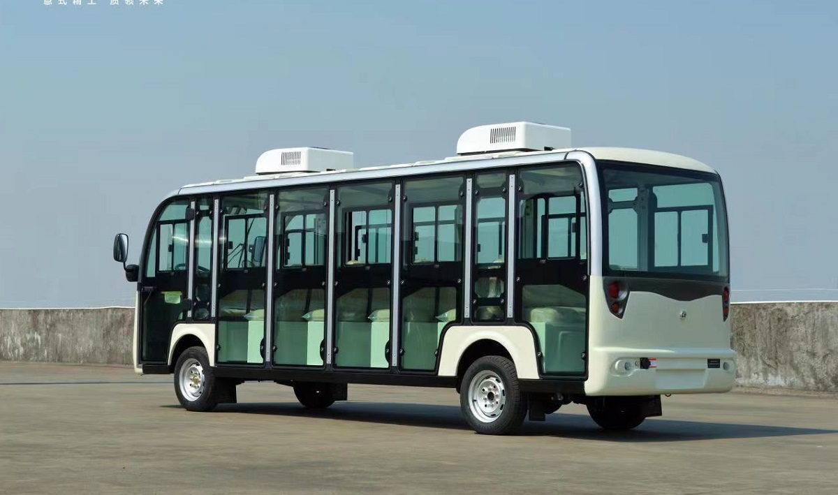 绿松-17座A款LS-A17F全封闭电动观光车 型号:LS-A17F电机:交流72V、7.5KW电池:12个6V充电机:电脑智能充电机电控:绿松交流控制器后桥:整体式后桥车身尺寸:5760(长)*1510(宽)*2080(高)mm额定乘员:17人向前速度:25-30km/h最大续驶里程:100-120km