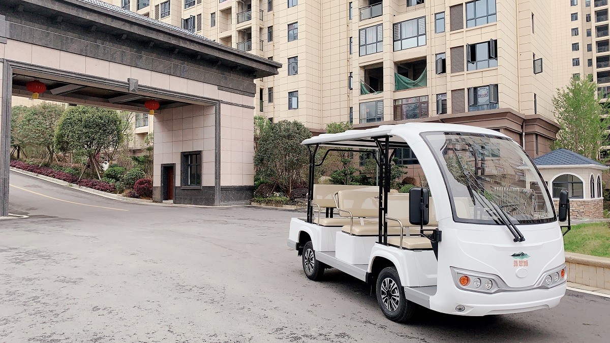 赣州翡翠城选用绿松-8座电动观光车