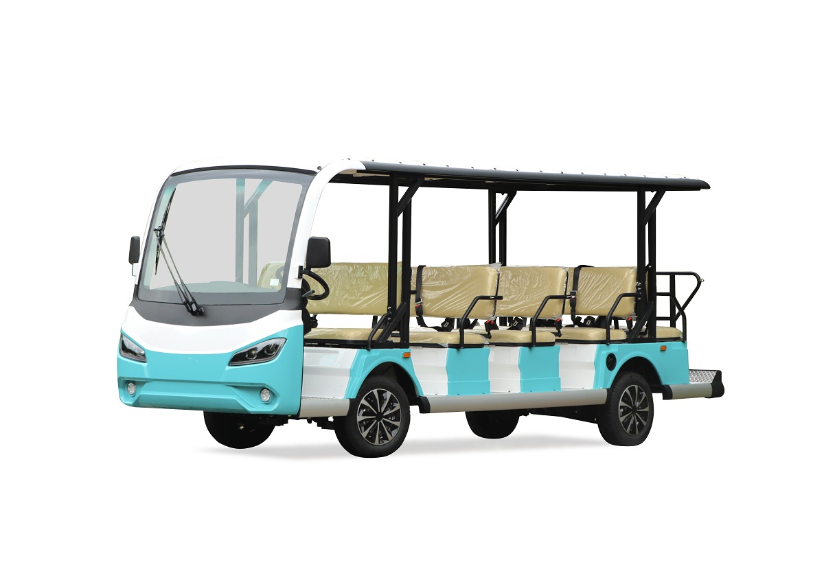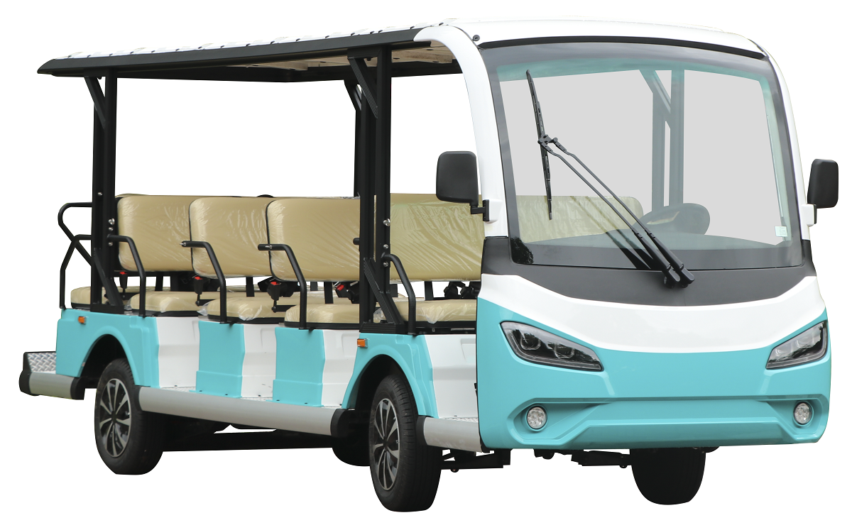 绿松14座C款LS-S14座旅游观光车 型号:LS-S14电机:交流72V、7.5KW电池:12个6V充电机:电脑智能充电机电控:进口交流控制器后桥:重载差速后桥身尺寸:5100(长)*1510(宽)*2080(高)mm额定乘员:14人向前速度:25-30km/h额定爬坡:20%最大续驶里程:100-120km
