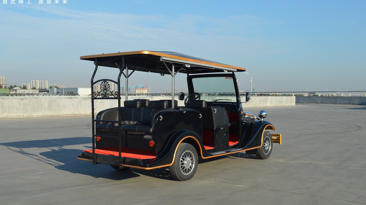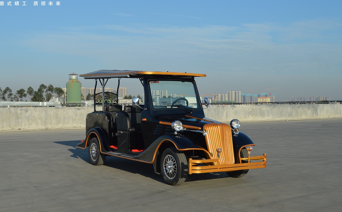绿松LS-S6.FA六人座电动老爷车 六人座电动老爷车型号:LT-S6.FA电机:交流48V、5KW电池:8个6V充电机:智能化车载充电机电控:进口交流控制器后桥:整体式后桥车身尺寸:4285(长)*1520(宽)*1903(高)mm额定乘员:6人向前速度:25-30 km/h额定爬坡:20%最大续驶里程:90-110km