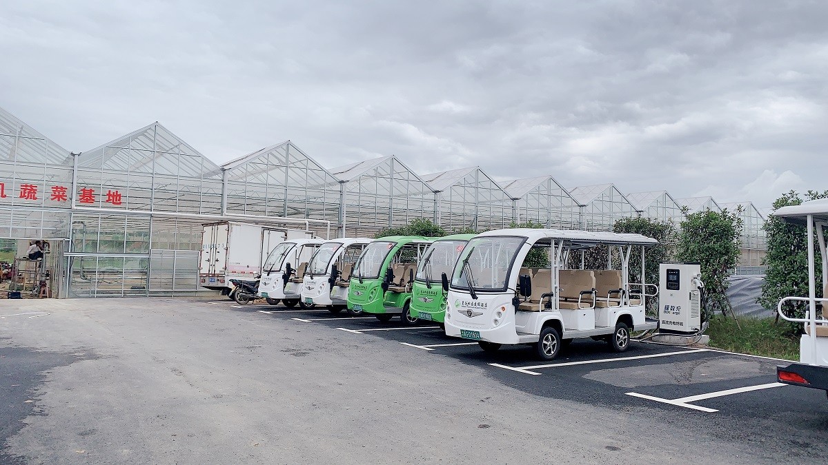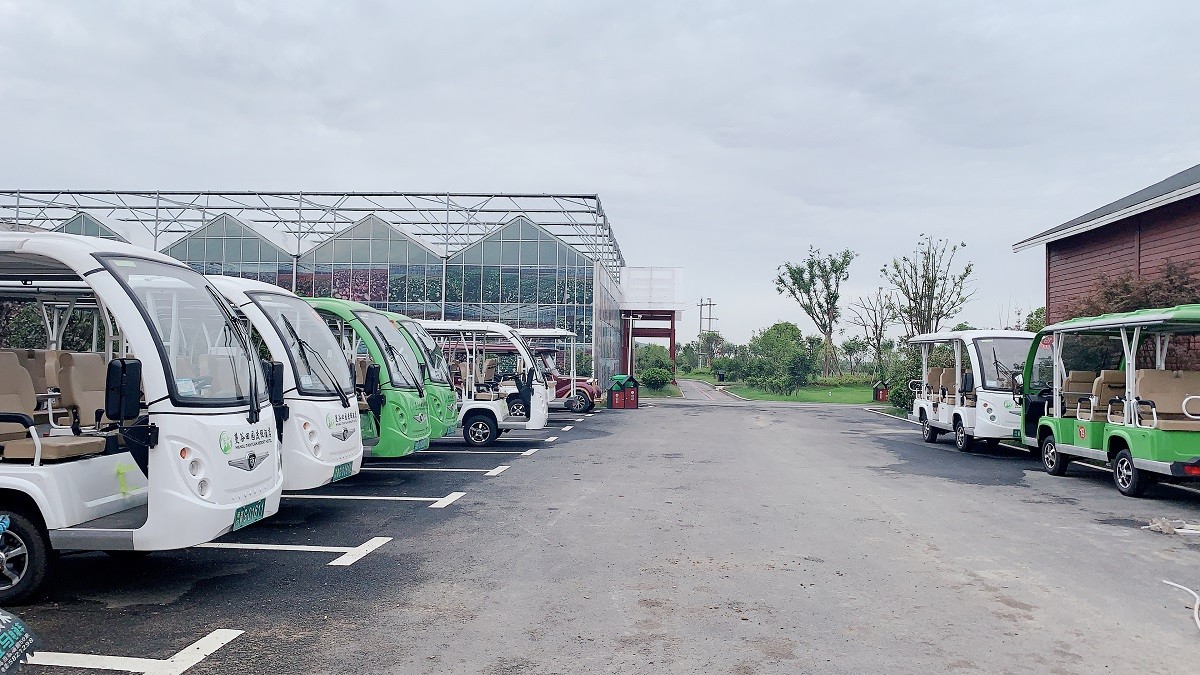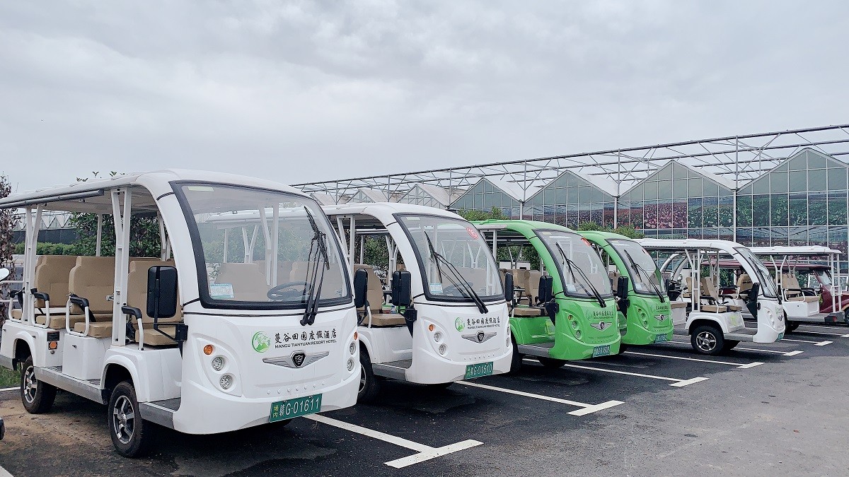 九江曼谷田园旅游区选购绿松一批11座电动观光车
