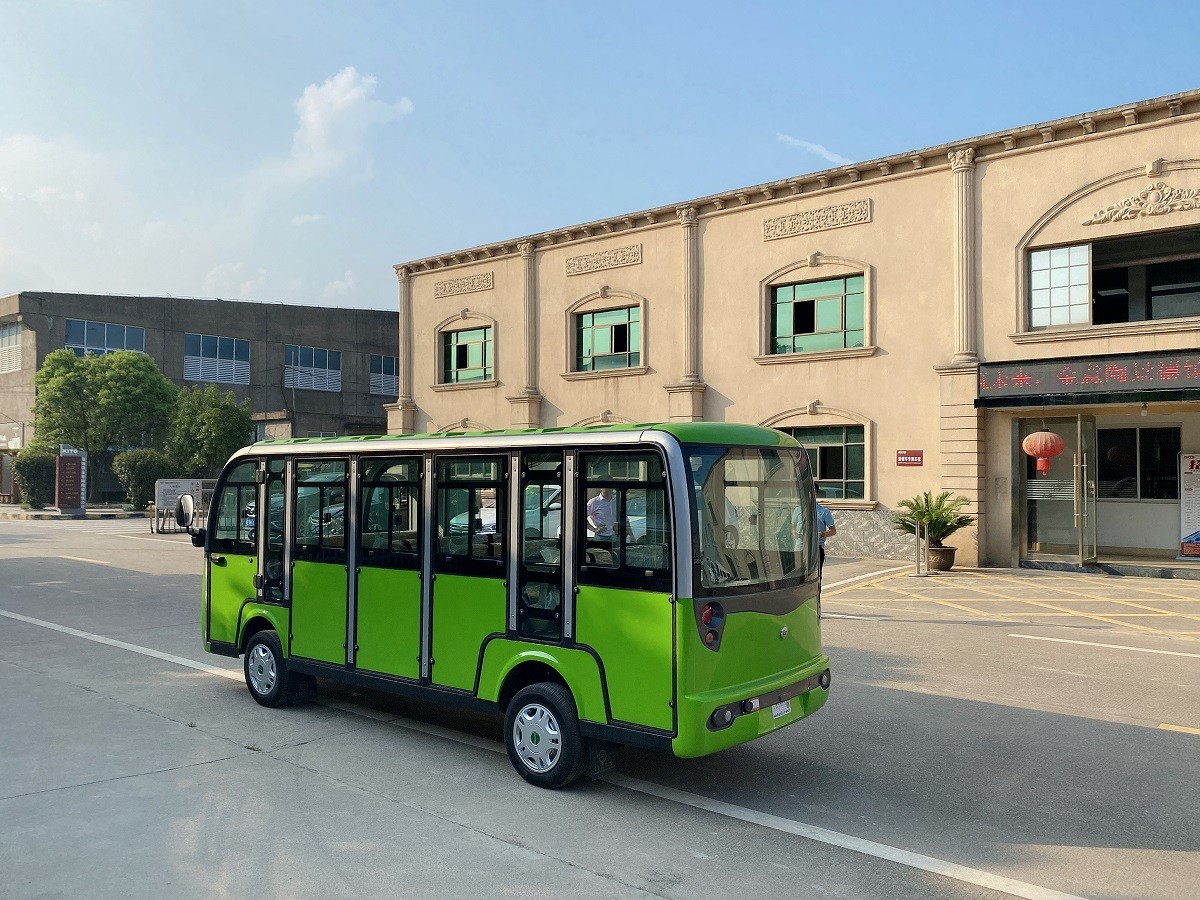 景德镇金意陶瓷厂选用绿松14座封闭观光车