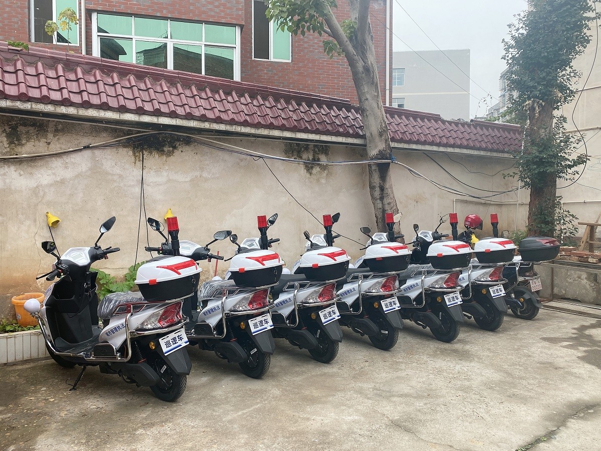 绿松-2座LS-J2两轮电动巡逻车、电动摩托车 型号:LS-J2电机:交流1000W电池:48-72V充电机:智能化车载充电机电控:交流控制器整车质量:68KG 车身尺寸:1880(长)*580(宽)*1100(高)mm额定乘员:2人向前速度:≤50 km/h额定爬坡:20%最大续驶里程:60 km