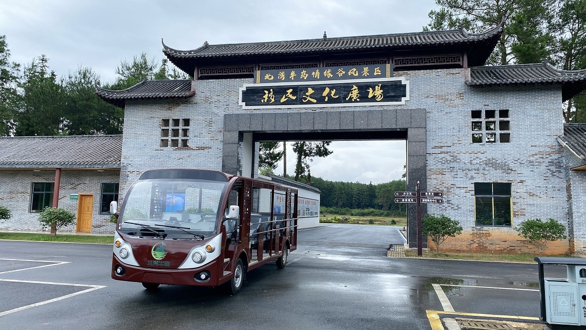 绿松23座燃油观光车进入———九江北湾半岛旅游区