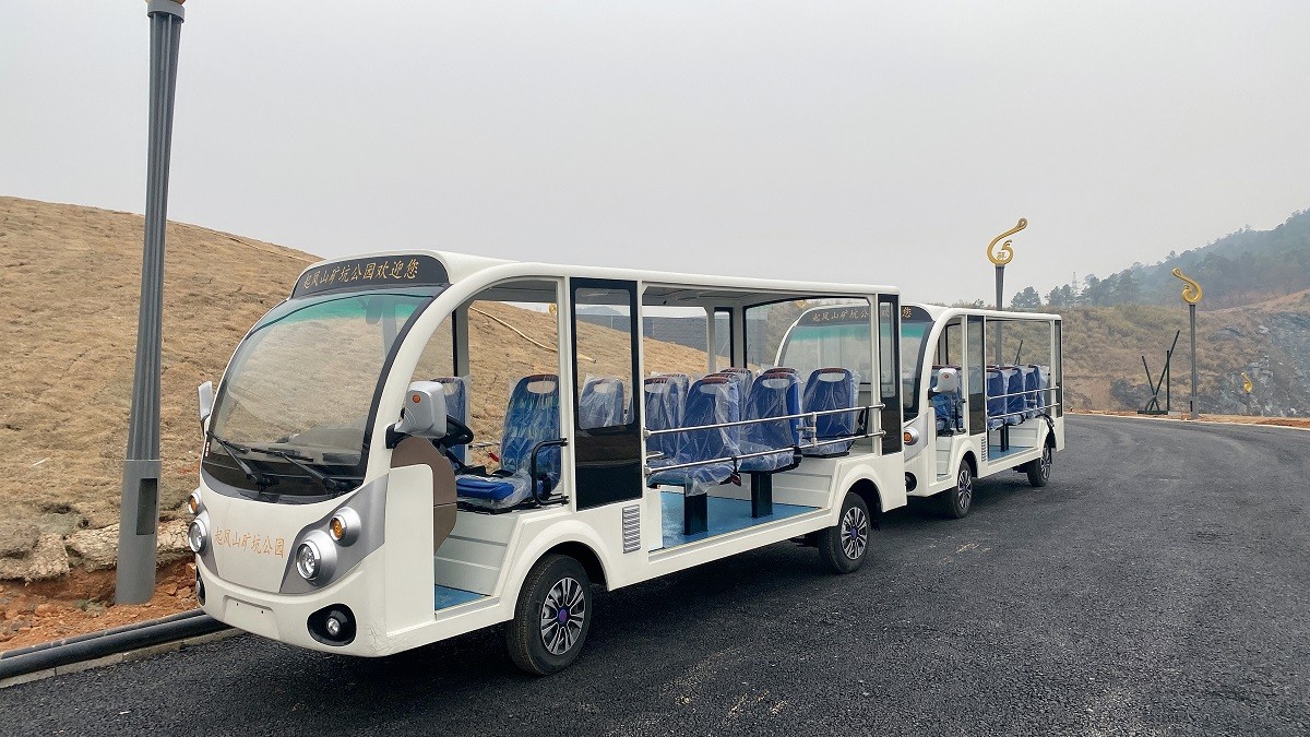 吉安矿坑公园选用绿松--11座燃油观光车